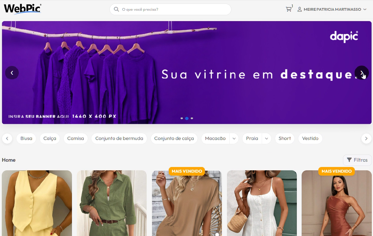 Com o Catálogo Nativo do Dapic, você manda um link e o cliente compra sozinho: navega por categorias, escolhe cor/tamanho por grade e fecha no carrinho. O pedido já entra no ERP para confecção pronto para faturar e expedir.